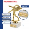 Наградная статуэтка с фигурой борцов на подставке. Подходит для размещения в интерьерах спортивных залов и коллекций призовых трофеев.