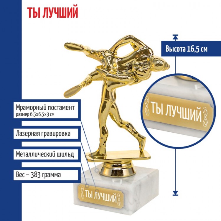 Лазерная гравировка нанесена на табличку (шильд), приклеенную к подставке. Размер: 16,5 x 15 x 9 см. Высота статуэтки без постамента: 13,5 см. Ширина между выступающими элементами: 7 см. Размер мраморной подставки: 6,5 x 6,5 x 3 см. Размер шильдика: 5 x 1,7 см. Материал: Пластик (фигурка), Мрамор (постамент). Вес: 383 гр. Упаковка: Картонная коробка. Наградная статуэтка с фигурой борцов на подставке. Подходит для размещения в интерьерах спортивных залов и коллекций призовых трофеев. Оригинальный подарок на любой праздник или награждение. Он станет достойной памятной наградой за победы и достижения от коллектива на память. Символизирует не только личные успехи, но и благодарность за труд и преданность делу. Актуально в качестве новогоднего сюрприза жене, мужу, отцу, взрослым родственникам (папе, дедушке, маме, бабушке), коллегам (начальнику), преподавателю или юбиляру. Такой красивый сувенир подходит для множества знаковых дат и событий дома и в офисе, на юбилеи родителей, международный женский день (8 марта), 14 и 23 февраля, Новый год или день рождения (ДР). Считается хорошим корпоративным подарком как для мужчин (сыну, брату, другу, любимому парню, руководителю), так и для женщин (начальнице, дочери, сестре, подруге или девушке). Вольная борьба - динамичный вид единоборств, где важны скорость, сила и тактическое мышление. 1785
