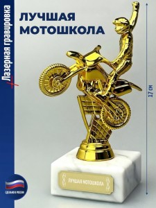 Лазерная гравировка нанесена на табличку (шильд), приклеенную к подставке. Размер: 17 x 6.5 x 6.5 см. Высота фигурки без постамента: 14 см. Размер мраморной подставки: 6.5 x 6.5 x 3 см. Размер шильдика: 5 x 1.7 см. Материалы: Пластик (фигурка), Мрамор (постамент). Вес: 370 г. Упаковка: Картонная коробка. Наградная статуэтка с фигуркой мотоциклиста предназначена для вручения участникам мотосоревнований и мероприятий, связанных с байк-культурой. Используется как трофей за достижения в мотоспорте или тематический элемент коллекции. Фигура байкера символизирует стремление к скорости, свободе и преодолению препятствий. Сувенир отражает дух приключений и подчеркивает личную преданность мотоциклам как части образа жизни. Сувенир станет отличной памятной наградой за заслуги или победы, подходит как взрослым мужчинам (папе, дедушке, руководителю и начальнику) так и молодым парням (сыну подростку, брату, другу, любимому). Также актуально в качестве подарка и для взрослых женщин (маме, бабушке, коллеге, начальнице) или юным девушкам (дочери, сестре, подруге или любимой) Эффектный вариант для байкера, мотогонщика, мотолюбителя или стантрайдера - к началу сезона, победе в ралли или соревнованиях, на День мотоциклиста или День рождения мотоцикла - 29 августа. Уместен владельцу чоппера, круизера, скутера, питбайка, мопеда или мотороллера - для отражения страсти к мотоспорту, спидвею и супермото. 1935