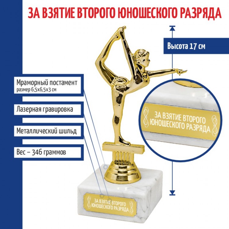 Статуэтка Гимнастка "За взятие второго юношеского разряда" на мраморном постаменте (17 см) - описание товара
