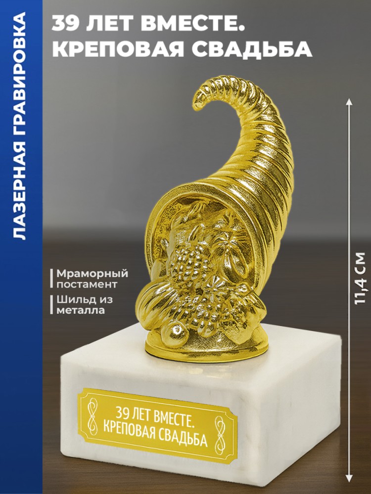Наградная статуэтка «Рог изобилия» - символ благополучия и семейного счастья. Используется для оформления интерьеров и вручения в качестве сувенира на юбилей, новоселье, годовщину или другую важную дату.