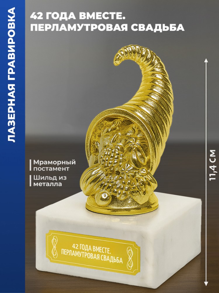 Наградная статуэтка «Рог изобилия» - символ благополучия и семейного счастья. Используется для оформления интерьеров и вручения в качестве сувенира на юбилей, новоселье, годовщину или другую важную дату.