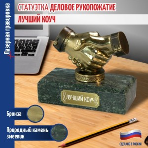 Статуэтка Пожатие рук "Лучший коуч" из бронзы и змеевика (Златоуст, 17 х 15 х 8 см) - описание товара