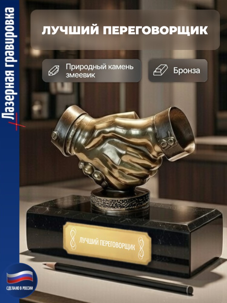 Деловой подарок "Пожатие рук" с гравировкой - особенная бронзовая статуэтка.