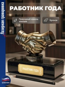 Фигура, где пожимаются руки, подчеркнёт гармонию как в официальных, так и личных отношениях. Кубок будет идеально смотреться на рабочем столе директора, в офисе или в переговорной.