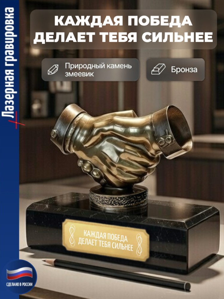 Деловой подарок "Пожатие рук" с гравировкой - особенная бронзовая статуэтка.