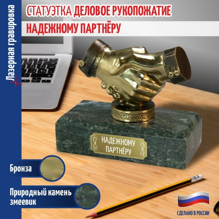 Счастливый случай Статуэтка Пожатие рук "Надежному партнёру" из бронзы и змеевика (Златоуст, 17 х 15 х 8 см)