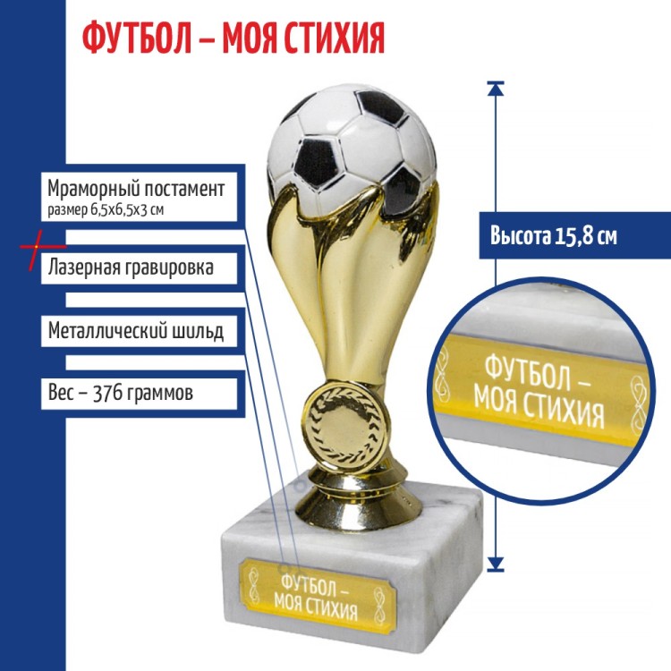 Кубок Футбольный мяч "Футбол - моя стихия" на мраморном постаменте (15,8 см) - описание товара