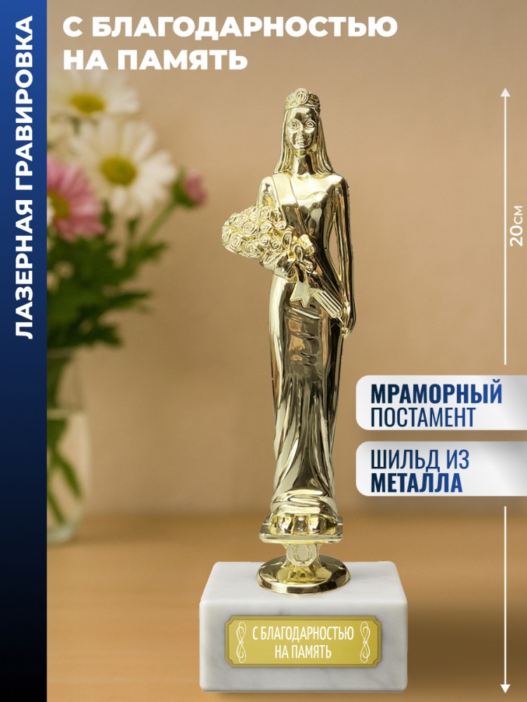 Изысканная наградная фигурка станет достойным подарком для конкурсанток, моделей, актрис или просто очаровательных женщин.