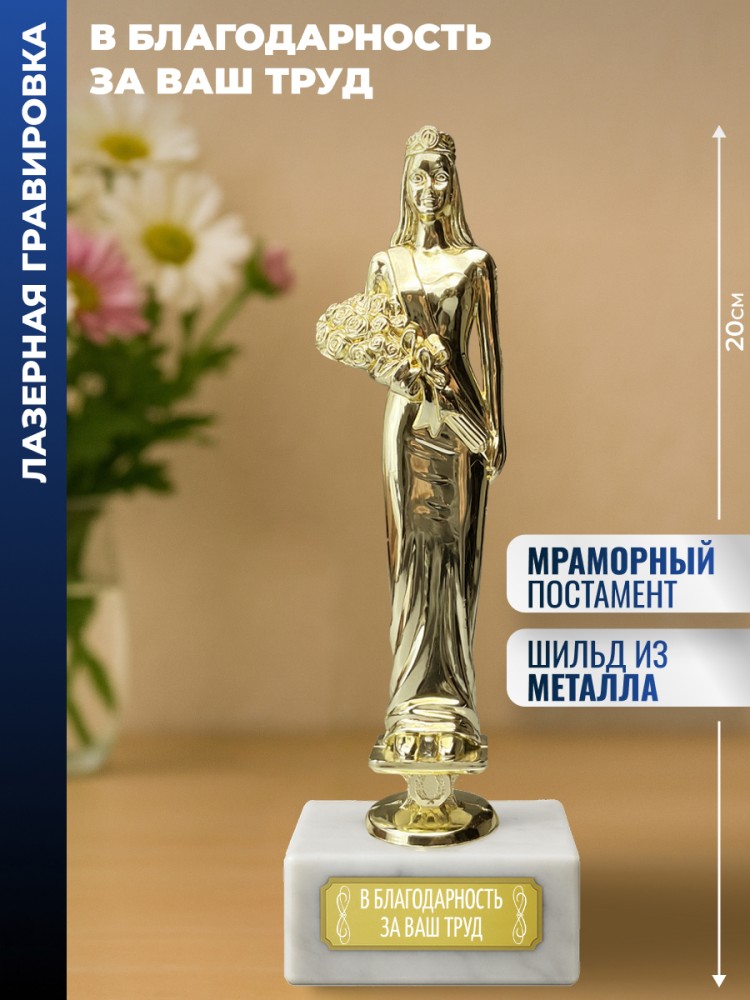 Изысканная наградная фигурка станет достойным подарком для конкурсанток, моделей, актрис или просто очаровательных женщин.