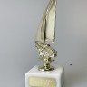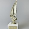 Наградная статуэтка с фигурой яхты на подставке. Подходит для размещения в интерьерах спортивных залов и коллекциях призовых трофеев.