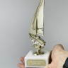 Наградная статуэтка с фигурой яхты на подставке. Подходит для размещения в интерьерах спортивных залов и коллекциях призовых трофеев.