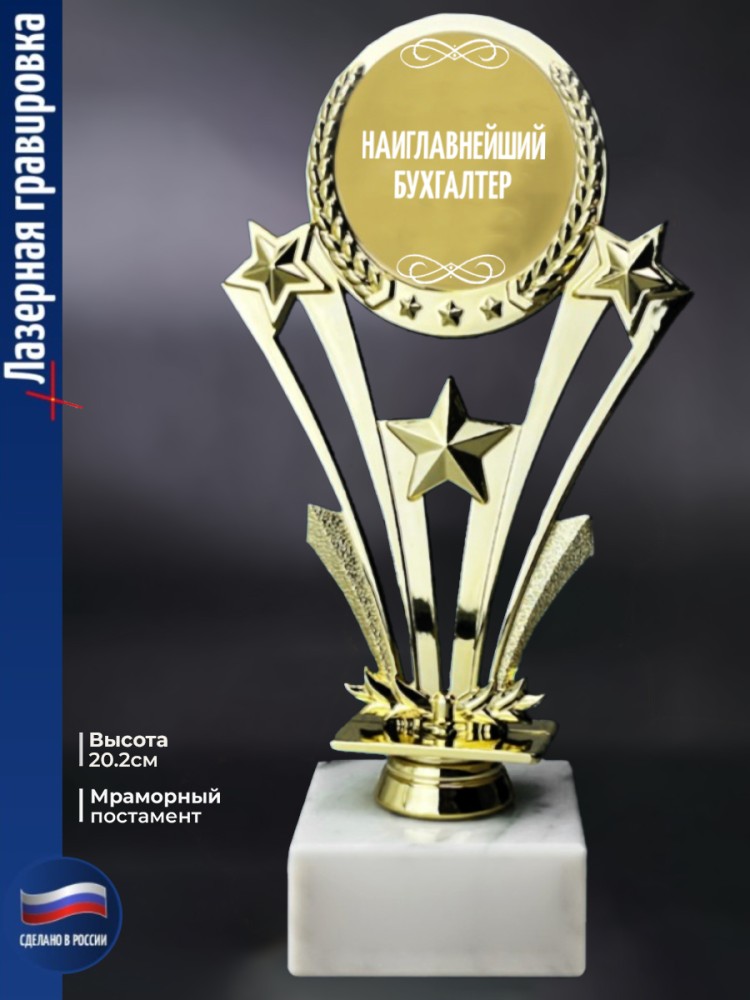 Наградной кубок со звездой используется для награждения призёров на массовых мероприятиях и праздниках или за участие в соревнованиях. Такая фигурка будет хорошо смотреться на наградной полке.