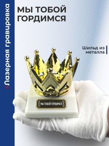 Элегантная наградная cтатуэтка c короной "Мы тобой гордимся" из пластика станет прекрасным символом достижений и успехов, подчеркивая значимость момента.