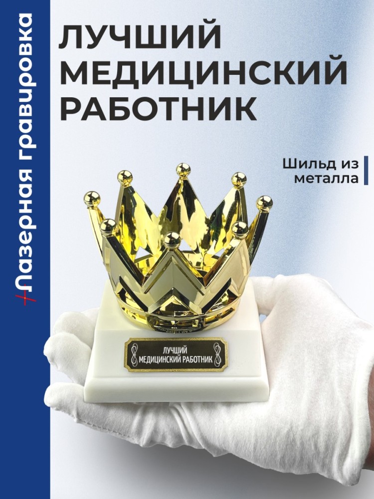 Элегантная наградная cтатуэтка c короной "Лучший медицинский работник" станет прекрасным символом достижений и успехов, подчеркивая значимость момента.