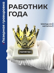 Элегантная наградная cтатуэтка c короной "Работник года" станет прекрасным символом достижений и успехов, подчеркивая значимость момента.
