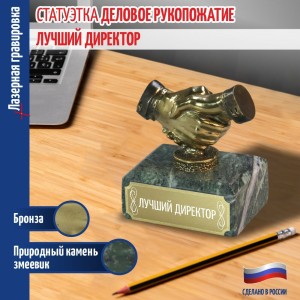 Статуэтка Рукопожатие "Лучший директор" из змеевика (9 х 8,5 х 6 см) - описание товара