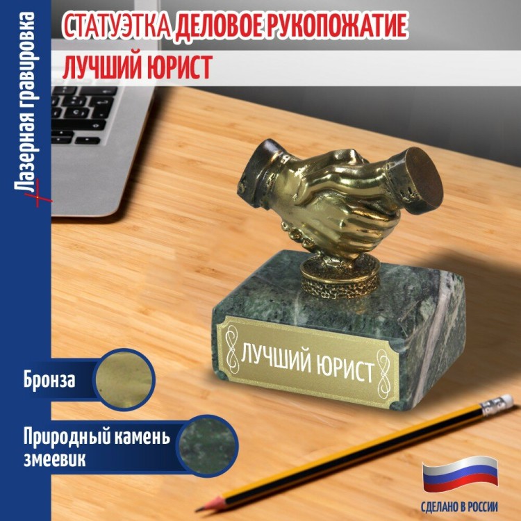 Статуэтка Рукопожатие "Лучший юрист" из змеевика (9 х 8,5 х 6 см) - описание товара