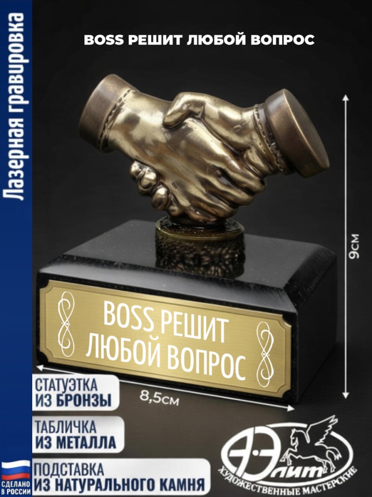 Наградная статуэтка «Рукопожатие» используется для вручения на деловых мероприятиях, корпоративных встреч и оформления офисных интерьеров.