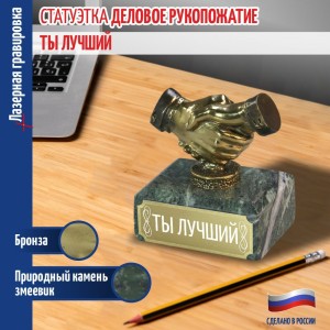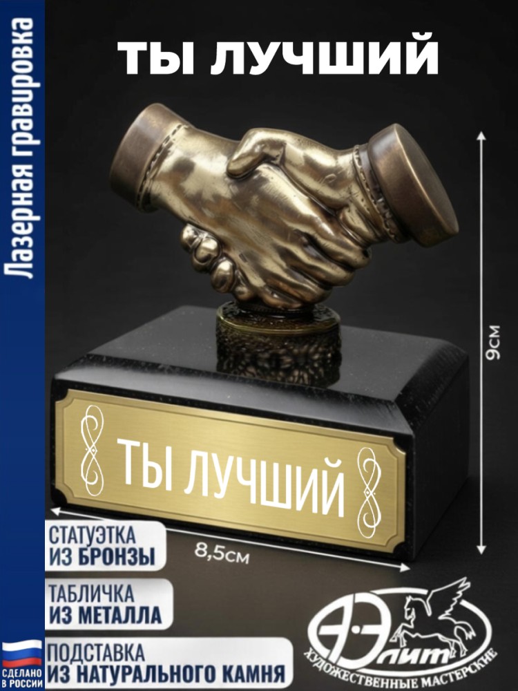 Наградная статуэтка «Рукопожатие» используется для вручения на деловых мероприятиях, корпоративных встреч и оформления офисных интерьеров.