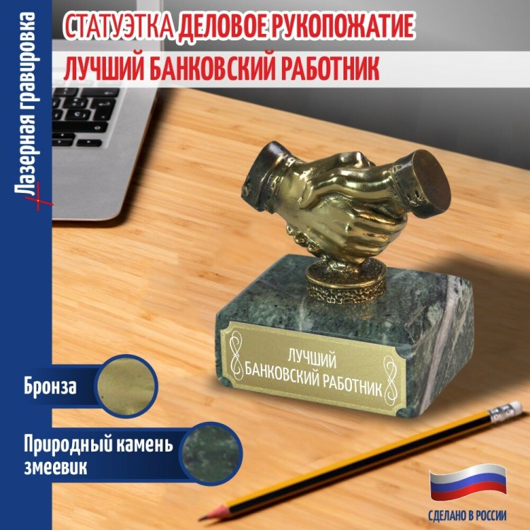 Наградная статуэтка «Рукопожатие» используется для вручения на деловых мероприятиях, корпоративных встреч и оформления офисных интерьеров.