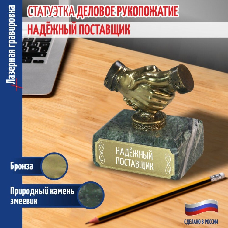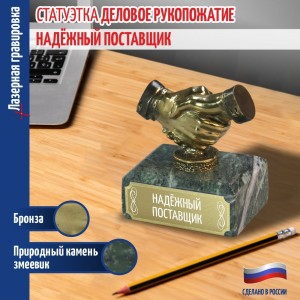 Наградная статуэтка «Рукопожатие» используется для вручения на деловых мероприятиях, корпоративных встреч и оформления офисных интерьеров.