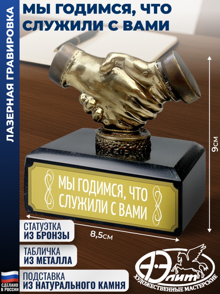 Статуэтка Рукопожатие "Мы годимся, что служили с вами" из змеевика (9 х 8,5 х 6 см) - описание товара