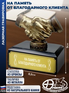 Наградная статуэтка «Рукопожатие» используется для вручения на деловых мероприятиях, корпоративных встреч и оформления офисных интерьеров.