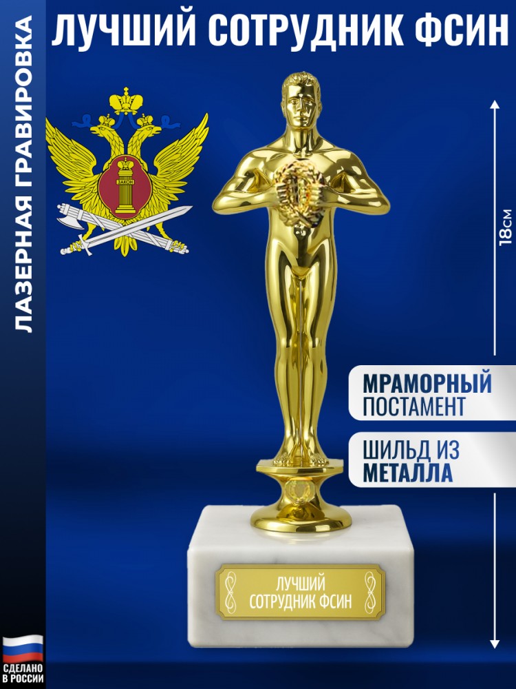 Размер наградной статуэтки: 18 х 6,5 х 6,5 см.