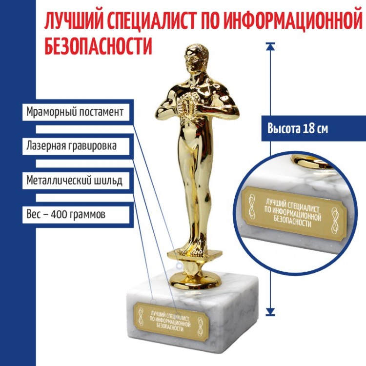 Размер наградной статуэтки: 18 х 6,5 х 6,5 см.