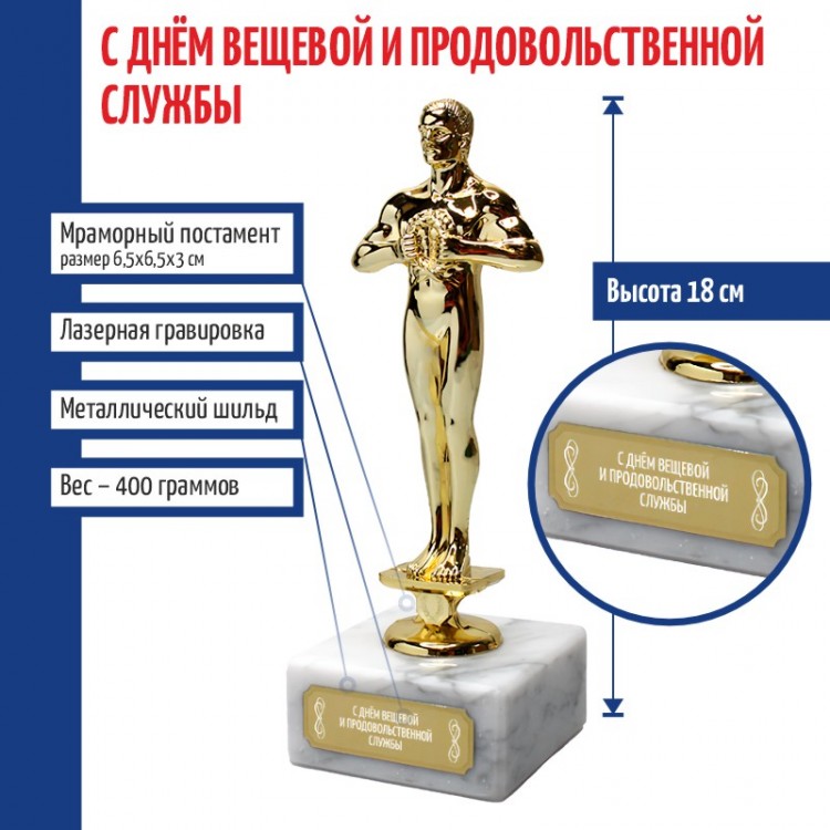 На основании (постаменте) есть место для нанесения гравировки или наклейки, благодаря чему можно персонализировать приз и сделать уникальный памятный сувенир к важному жизненному событию.