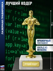 Размер наградной статуэтки: 18 х 6,5 х 6,5 см.