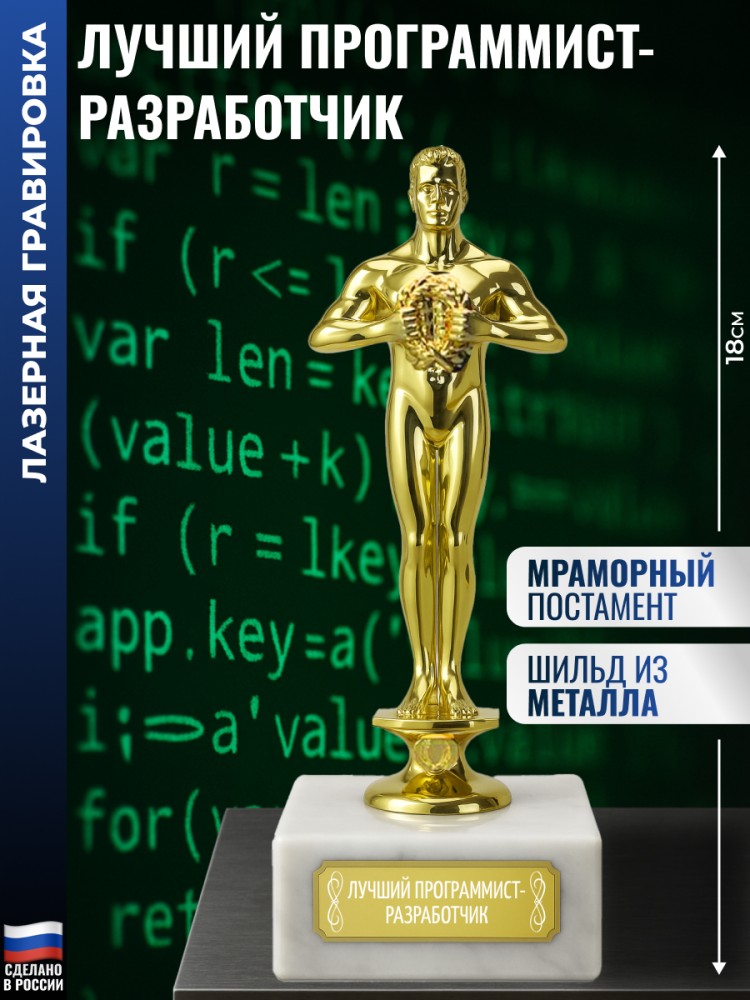 Размер наградной статуэтки: 18 х 6,5 х 6,5 см.