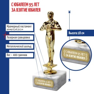 Размер наградной статуэтки: 18 x 6,5 x 6,5 см.