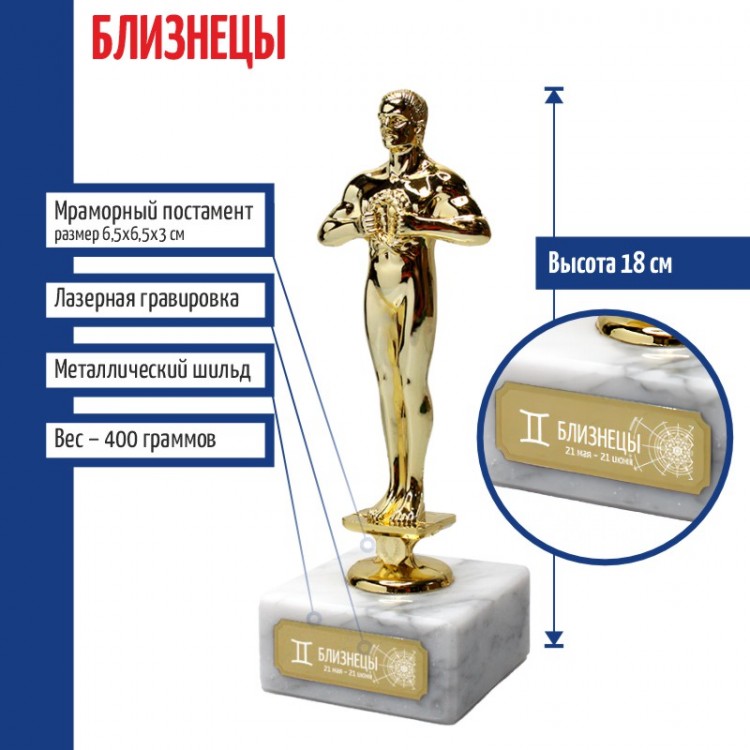 Размер наградной статуэтки: 18 х 6,5 х 6,5 см.