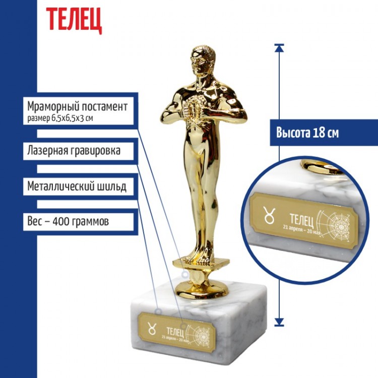 Размер наградной статуэтки: 18 х 6,5 х 6,5 см.