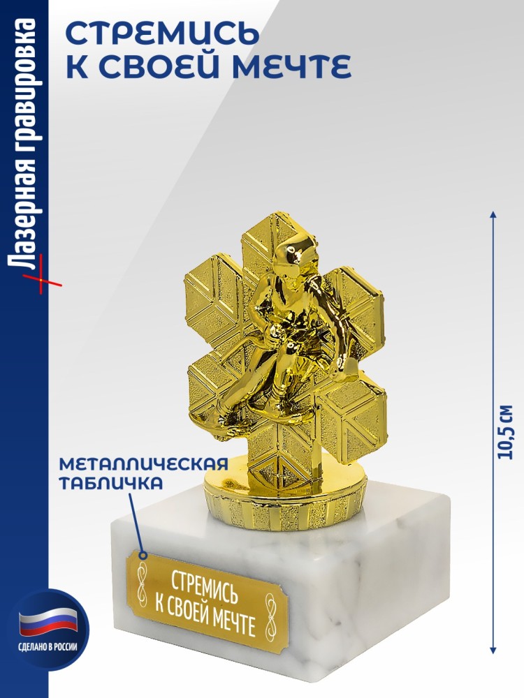 Наградная статуэтка с изображением лыжника в динамике скоростного спуска. Используется для вручения участникам лыжных соревнований, клубных мероприятий и оформления спортивных интерьеров.