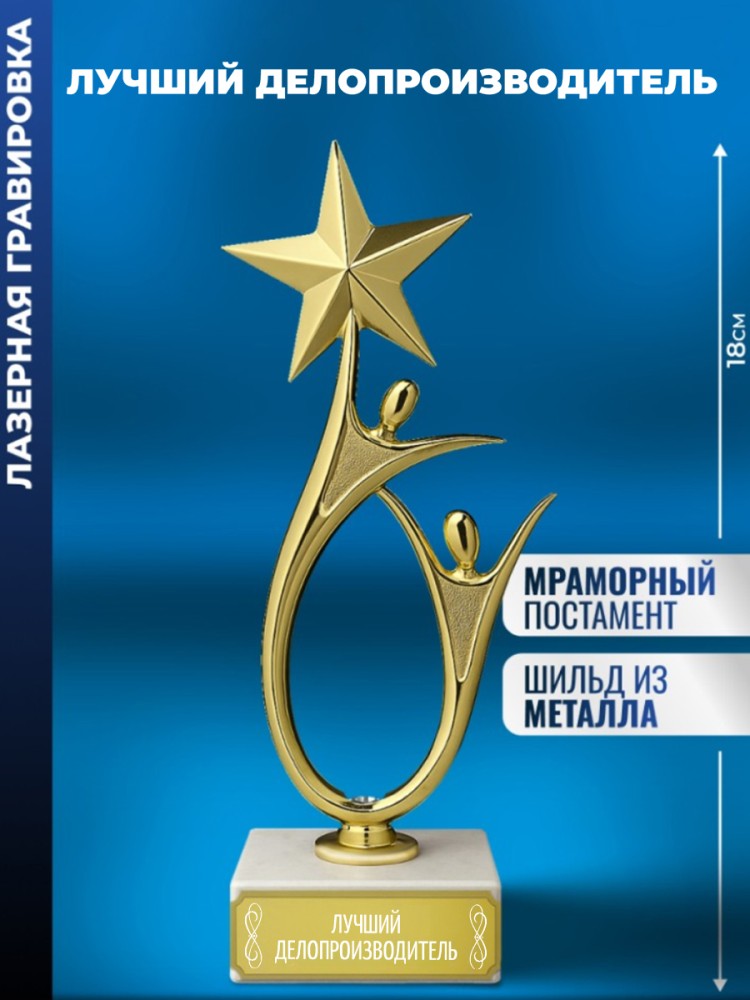 Наградная статуэтка с фигурой звезды используется при подведении итогов соревнований, конкурсов и мероприятий различного масштаба. Представляет собой универсальный знак поощрения за достижения.