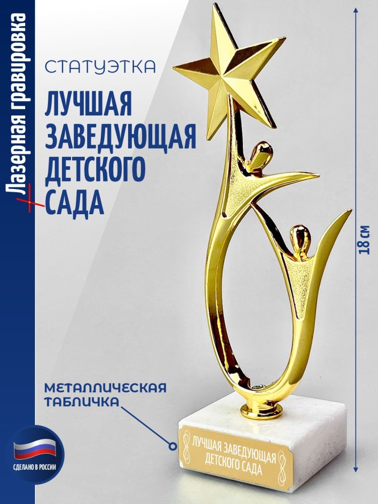 Наградная статуэтка с фигурой звезды используется при подведении итогов соревнований, конкурсов и мероприятий различного масштаба. Представляет собой универсальный знак поощрения за достижения.
