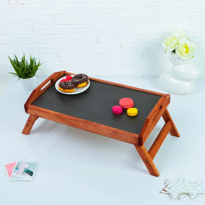 Поднос на ножках для завтрака выполнен из качественных материалов и имеет стильный дизайн, который подойдёт к любому интерьеру. Благодаря продуманной конструкции, на нём можно разместить всё необходимое для завтрака: чашку кофе, тарелку с выпечкой или фруктами, а также другие аксессуары.