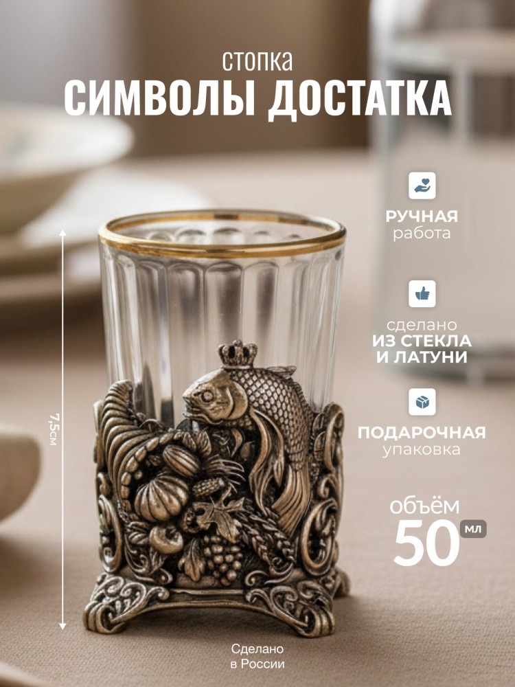 Позолоченное покрытие ободка стопки выполнено из нитрида титана (аналог позолоты, яркое износоустойчивое нанесение на хрустальной поверхности).