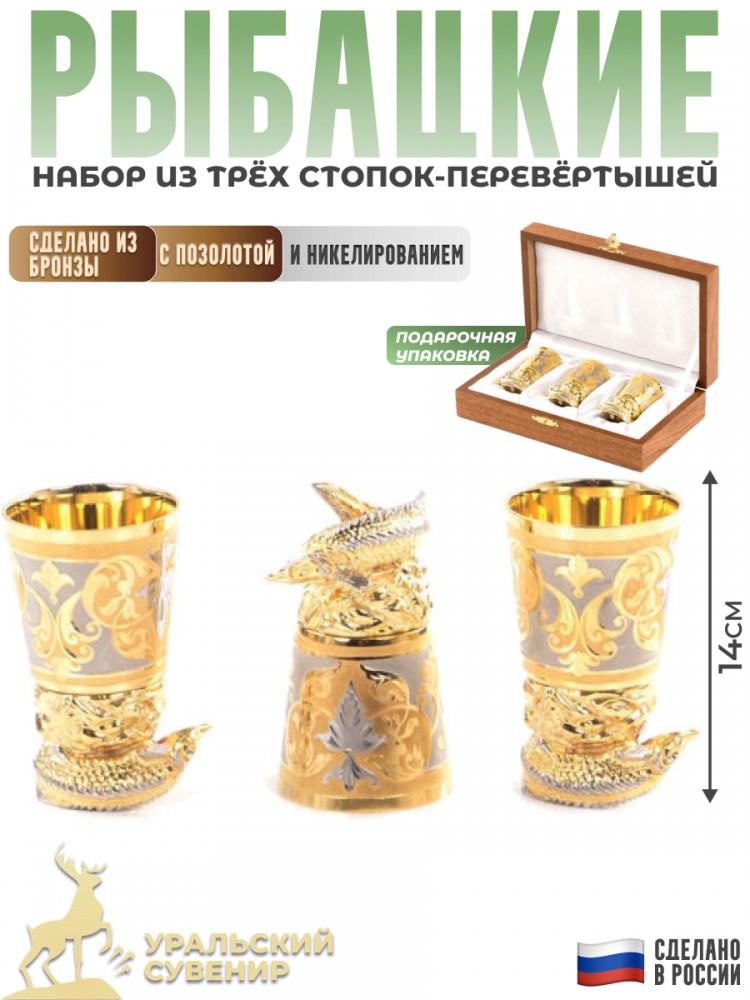 Эксклюзивный набор стопок, украшенный златоустовской гравюрой, идеален для ценителей рыбалки и прекрасных вещей.