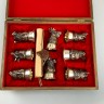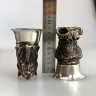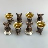 Рюмки изготовлены из латуни с посеребрением и золочением элементов, аппликация из меди