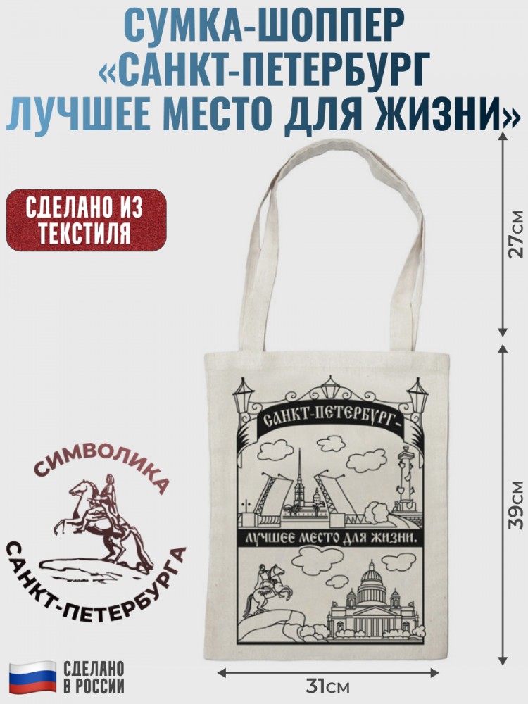 Эксклюзивная текстильная сумка с изображением достопримечательностей Санкт-Петербурга.