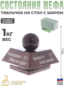 Уникальная табличка для стола с шаром из обсидиана, отлично подойдет в качестве подарка для руководителя.