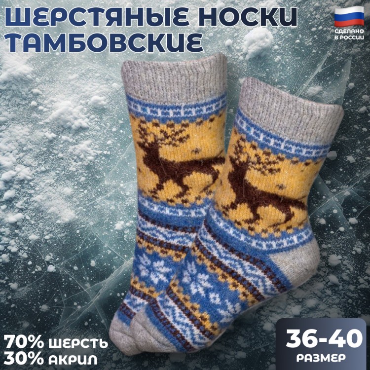 Почувствуйте уют и тепло с каждым шагом в этих шерстяных носках с изображением оленя на бежевом фоне, идеальных для зимнего периода.