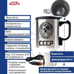 | Комплектация | Термокружка, Адаптер для прикуривателя |