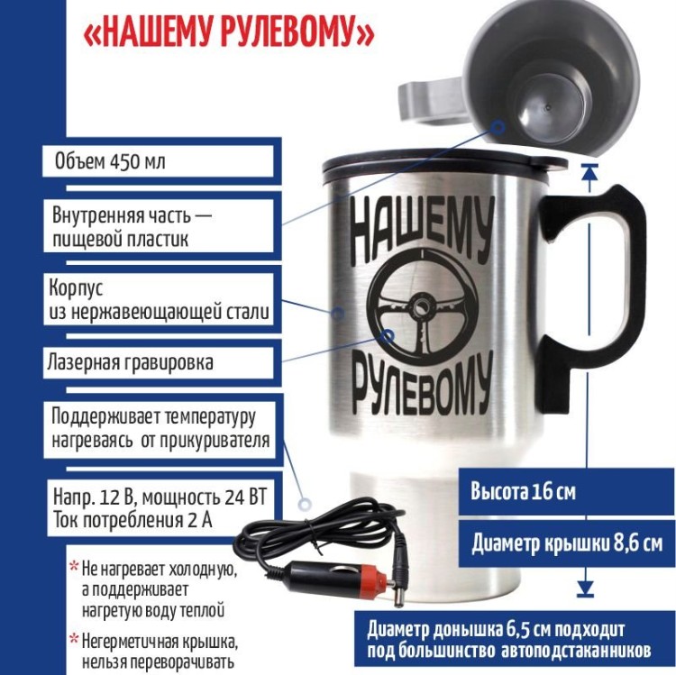 | Комплектация | Термокружка, Адаптер для прикуривателя |