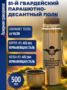 Термос "51-й гвардейский парашютно-десантный полк" ВДВ (500 мл) - описание товара