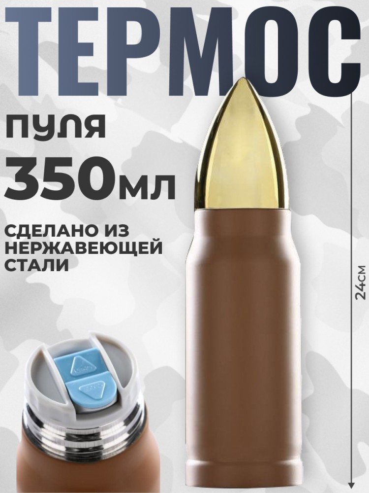 Уникальный термос "Пуля" на 350 мл с двойными стенками идеально подходит для сохранения вашего напитка горячим. Изготовлен из нержавеющей стали с пластиковыми элементами, обеспечивает надежность и долговечность.
